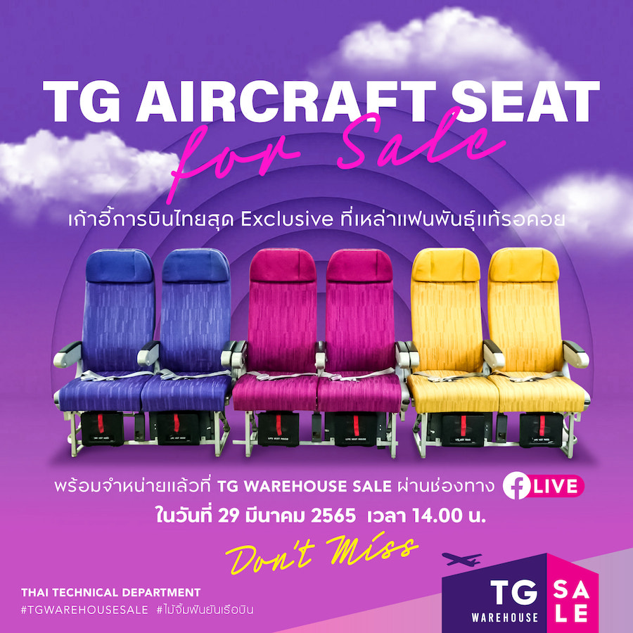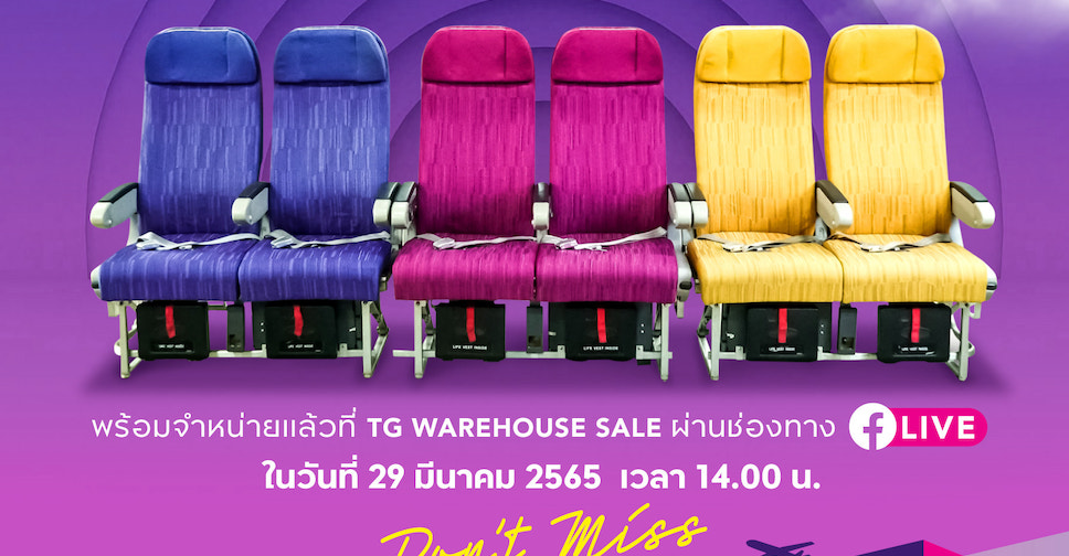 สำหรับผู้ที่สนใจเก้าอี้เครื่องบินของการบินไทย สามารถติดตามวิธีการสั่งซื้อได้ในการไลฟ์สดของ TG Warehouse Sale เวลา 14.00 น. วันที่ 29 มีนาคมนี้ หรือสอบถามรายละเอียดเพิ่มเติมผ่านทาง Inbox ของเพจดังกล่าว