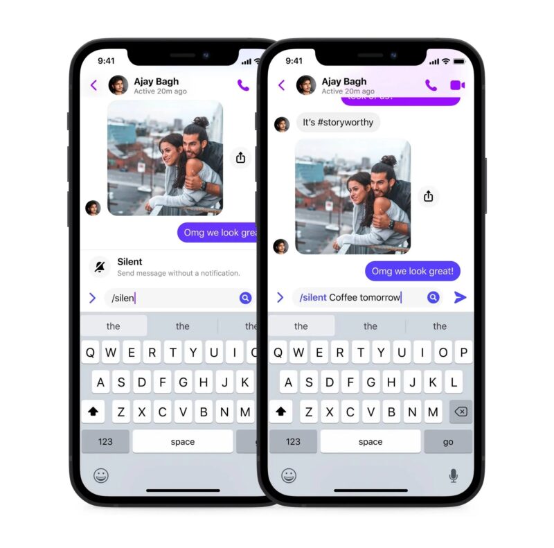 - /silent: การเพิ่มคีย์เวิร์ดนี้ทำให้ผู้ใช้สามารถส่งข้อความได้โดยไม่ต้องแจ้งให้ผู้รับทราบ ทำให้ได้รับประสบการณ์การส่งข้อความที่ไร้เสียง เพื่อลดการรบกวนผู้อื่นหากไม่ใช่ข้อความเร่งด่วนหรืออยู่นอกเหนือเวลาการติดต่อ