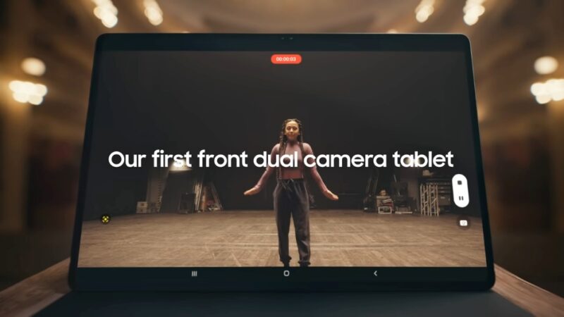 เพื่อตอบโจทย์การทำงานแบบ Work From Anywhere และรองรับการทำงานแบบ Hybrid Working ที่คนต้องทำงานแบบออนไลน์และออฟไลน์ไปควบคู่กัน Galaxy Tab S8 Ultra จึงได้กล้องหน้าคู่แบบมุมกว้างพิเศษ (Ultra-wide front camera) ความละเอียด 12 ล้านพิกเซล และคุณภาพวิดีโอระดับ 4K พร้อมฟีเจอร์การจัดเฟรมอัตโนมัติ (Auto Framing)[9] ที่ช่วยจับภาพผู้ใช้ขณะที่เคลื่อนไหว ตลอดจนไมโครโฟน 3 ตัวและระบบเสียง Dolby Atmos® มอบประสบการณ์การประชุม Video Conference ได้อย่างมืออาชีพ นำเสนองานได้อย่างไม่มีติดขัด
