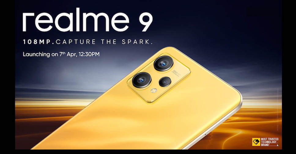 realme เตรียมเปิดตัวสมาร์ทโฟน realme 9 เวอร์ชั่น 4G LTE ในประเทศอินเดีย วันที่ 7 เมษายนนี้ พร้อมเผยโฉมให้เห็นดีไซน์อย่างชัดเจน มาในสีทอง, สีขาว และ สีดำ มีความบางเพียง 7.99 มิลลิเมตร น้ำหนักเบา 178 กรัม และได้รับการเคลือบผิวอย่างสวยงาม