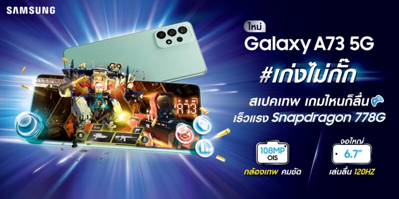 ขึ้นชื่อว่า Galaxy A73 5G เห็นปุ๊บก็รู้ปั๊บ ว่าออกแบบมาเพื่อเอาใจเหล่าเกมเมอร์โดยเฉพาะ ซึ่งนอกจากดีไซน์ภายนอกที่สวยงาม โฉบเฉี่ยว สีสันโดนใจแล้ว สเปกภายในก็ยังเทพแบบสุดๆ ด้วยความเร็วแรงกว่าเดิมถึง 50% จากชิปเซ็ต Snapdragon 778G ที่สายเกมเมอร์ไม่ควรพลาด ทำให้การเล่นเกมบนหน้าจอขนาดใหญ่ 6.7 นิ้ว ผ่านอัตราการรีเฟรชที่ 120Hz ลื่นไม่กระตุก รวมถึงยังคงความว้าวของกล้องความละเอียด 108 ล้านพิกเซลกับเลนส์ OIS กันสั่น ดังนั้น แอคทิวิตี้สุดจัดแค่ไหนก็ถ่ายชัด เก็บครบทุกรายละเอียด