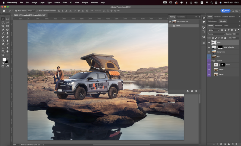 สำหรับโปรเจคล่าสุดคุณโต้ร่วมงานกับ ISUZU ประเทศไทยเพื่อโปรโมท ISUZU V-Cross 4X4 ที่ต้องเดินทางไปทั่วประเทศเริ่มตั้งแต่เกาะพระทอง จังหวัดพังงา, หาดชมดาว จังหวัดอุบลราชธานี และ อำเภอปาย จังหวัดแม่ฮ่องสอน ซึ่งแต่ละจังหวัดนั้นมีสภาพอากาศที่ค่อนข้างแตกต่างกันอย่างมาก ทั้งร้อนจัดกลางแดด ไปจนถึงอากาศเย็น และฝนตก นอกจากเรื่องสภาพอากาศแล้วนั้น ยังเป็นการทำงานแบบกองชนกอง คือมีทั้งกองถ่ายภาพนิ่งและกองหนังควบคู่กัน ทำให้ในการถ่ายงานแต่ละครั้งนั้น คุณโต้มีเวลาแค่ประมาณ 15 นาทีเท่านั้น ด้วยระยะเวลาที่จำกัด ทำให้ทั้งหน้างานและงาน Post-Production ค่อนข้างหนักและอาศัยการตัดต่อเข้าช่วย จึงจะต้องมีอุปกรณ์ประสิทธิภาพสูงเพื่อรองรับการทำงานในส่วนนั้น