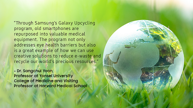 “โปรแกรม Galaxy Upcycling จากซัมซุง ได้เปลี่ยนสมาร์ทโฟนให้กลายเป็นอุปกรณ์ทางการแพทย์ที่มีค่า ซึ่งนอกจากแก้ปัญหาเรื่องการดูแลสุขภาพดวงตาแล้ว โปรแกรมนี้ยังเป็นตัวอย่างที่ดีของซัมซุงในการคิดค้นวิธีการที่สร้างสรรค์เพื่อลดขยะอิเลคโทรนิกส์และรีไซเคิลทรัพยากรอันมีค่าของโลก” ดร.เซ็งชอล ยูน ศาสตราจารย์ประจำวิทยาลัยแพทยศาสตร์ มหาวิทยาลัยยอนเซ และศาสตราจารย์รับเชิญที่โรงเรียนแพทย์ฮาร์วาร์ด กล่าว