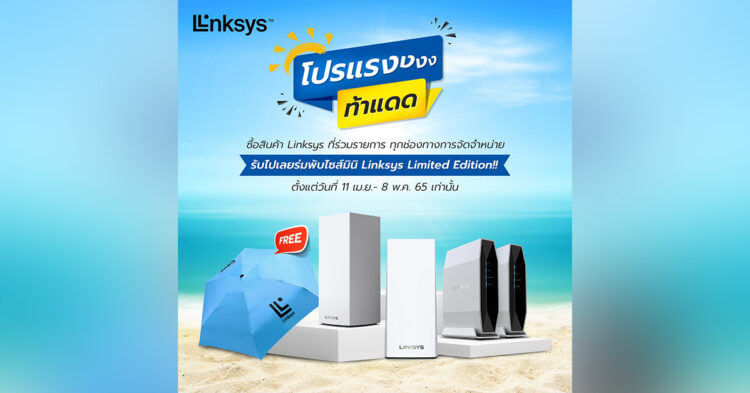 Linksys จัดเต็มโปรโมชั่นรับซัมเมอร์กับแคมเปญ Linksys Summer Sale ลดกระหน่ำในราคาสุดหนาว เอาใจคอเราเตอร์กับรุ่น Atlas Pro 6 พร้อมรับร่มสุดคูล Limited Edition