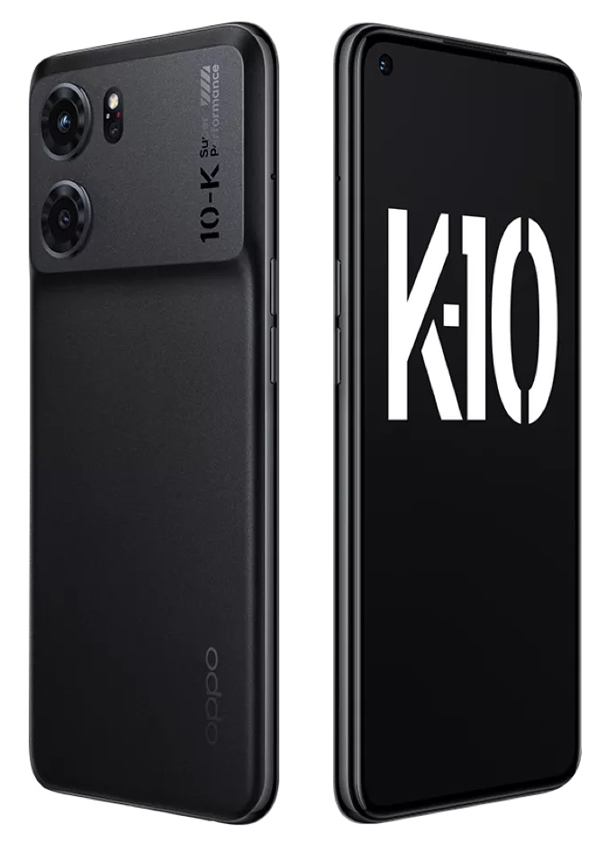 OPPO K10 ใช้ชิปประมวลผล MediaTek Dimensity 8000-MAX ความจุแบตเตอรี่ 4890mAh รองรับชาร์จเร็ว 67W ได้รับกล้องหลัง 64 + 8 + 2 ล้านพิกเซล กล้องหน้า 16 ล้านพิกเซล และใช้มอเตอร์แนวราบแกน X