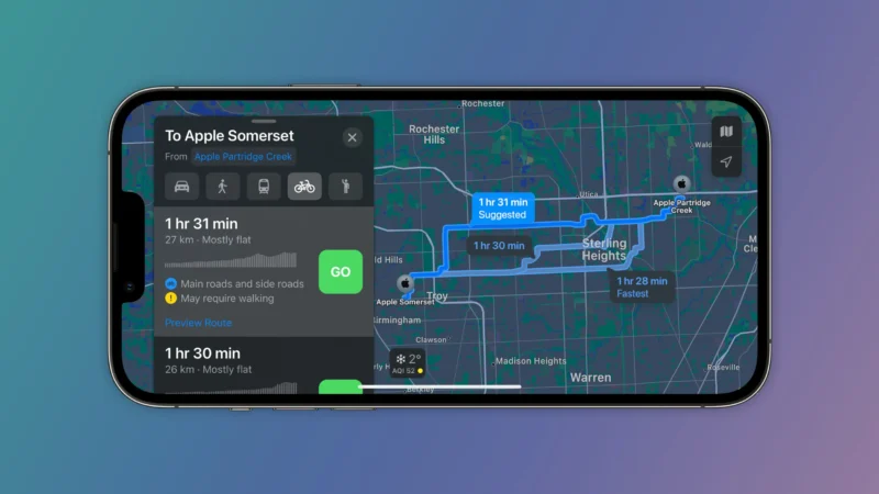 Apple Maps ได้เคยแนะนำการนำทางสำหรับจักรยานใน iOS 14 เพื่อให้นักปั่นสามารถค้นหาเส้นทางที่เหมาะสมสำหรับการเดินทางด้วยจักรยาน ไม่ว่าจะเป็นเลนจักรยาน, ความหนาแน่นในการจราจร ณ เวลานั้น และล่าสุด Justin O’Beirne ก็ไได้รายงานว่า Apple Maps ได้เพิ่มระบบการนำทางสำหรับจักรยานในเมือง Chicago, Detroit, Indianapolis, Cleveland, Columbus, Cincinnati และ Charleston ให้กับผู้ที่เดินทางด้วยจักรยานใช้งานแล้ว