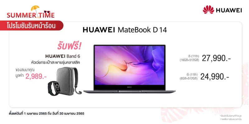 - HUAWEI MateBook D 14 New รุ่น i5 11th Gen 16GB+512GB ราคา 27,990 บาท