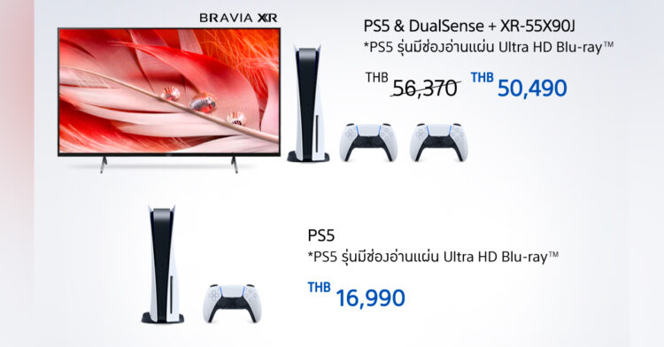 1. PlayStation5 รุ่นมีช่องอ่านแผ่น Ultra HD Blu-ray™ คู่กับคอนโทรลเลอร์ไร้สาย DualSense และ TV XR-55X90J 50,490 บาท (ปกติ 51,490 บาท)