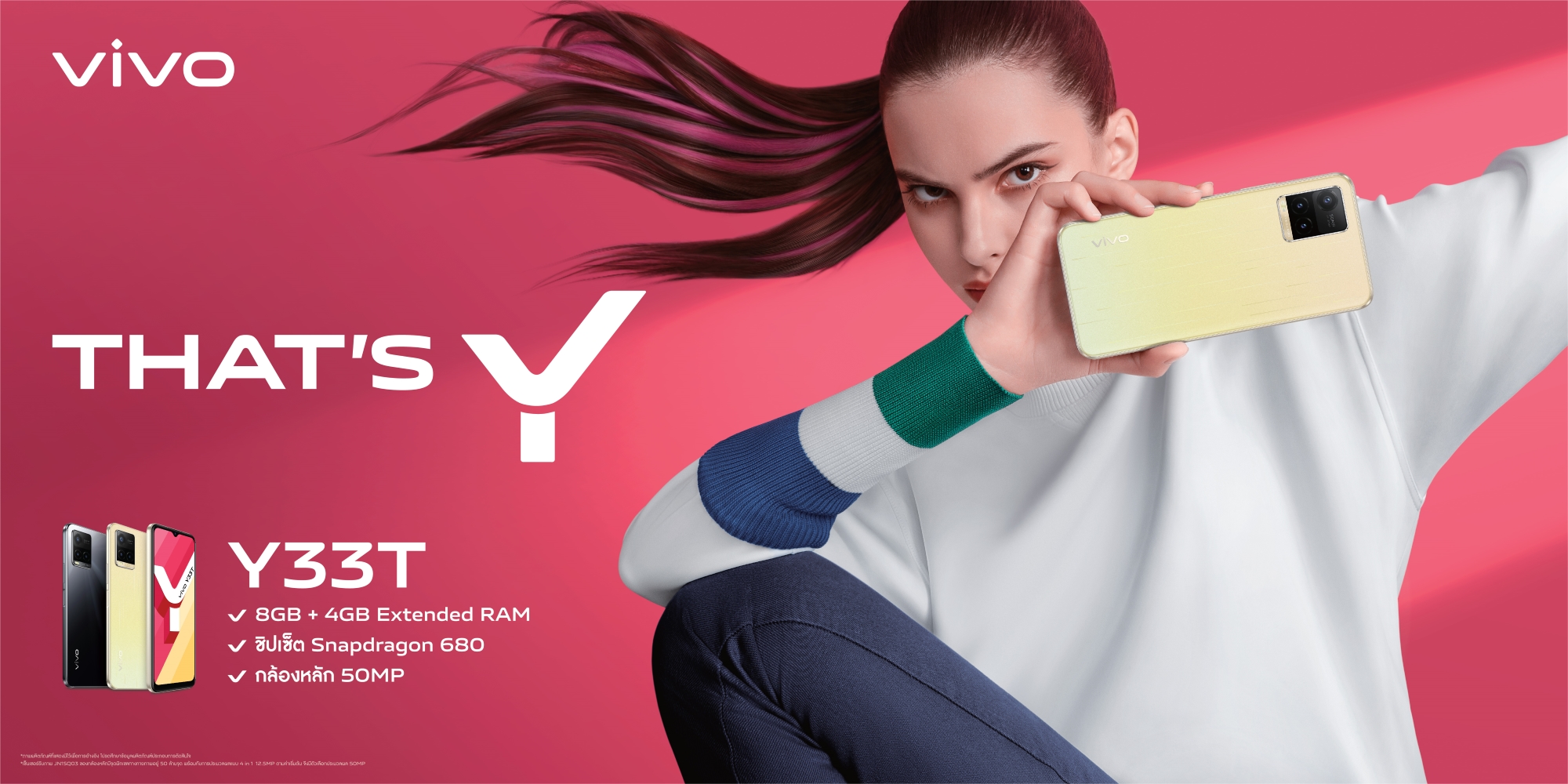 vivo แบรนด์สมาร์ตโฟนชั้นนำระดับโลก เตรียมเปิดตัว Y Series รุ่นล่าสุดของปี 2022 อย่าง ‘vivo Y33T’ ที่มาพร้อมกับตัวเครื่องดีไซน์บางเบาเพียง 8.0 มิลลิเมตร หน้าจอโค้งมนจับถนัดมือตามสไตล์วีโว่ ใช้งานได้ไม่มีสะดุดด้วยชิปเซตประมวลผล Snapdragon 680 ที่ช่วยลดการใช้พลังงานได้ดีขึ้น ทำงานร่วมกับ RAM 8 GB เสริมด้วยเทคโนโลยี Extended RAM ที่ขยาย RAM เพิ่มได้ถึง 4 GB แบตเตอรีความจุ 5000 mAh รองรับเทคโนโลยีชาร์จไว 18W พร้อมระบบการชาร์จย้อนกลับ (Reverse charging) ที่เปลี่ยนสมาร์ตโฟนให้กลายเป็น Power bank ขนาดใหญ่ ขยายระยะเวลาการใช้งานได้จุใจกว่าเดิม เก็บรายละเอียดภาพถ่ายคมชัดด้วยกล้องหลักความละเอียด 50MP เตรียมวางจำหน่ายอย่างเป็นทางการทั่วประเทศ 27 เมษายนนี้ ในราคาเพียง 7,999 บาท