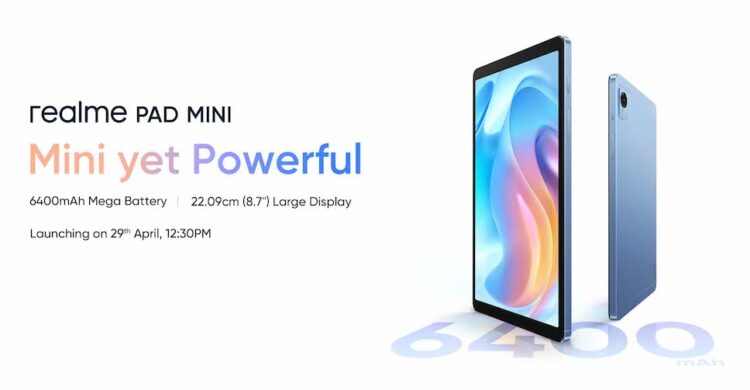 realme พร้อมเปิดตัวแท็บเล็ตรุ่นใหม่ realme Pad Mini ในประเทศอินเดีย วันที่ 29 เมษายนนี้ โดยชูจุดเด่นที่ความจุแบตเตอรี่ 6400mAh เล่นวิดีโอในรูปแบบสตรีมมิ่งได้นานถึง 15.8 ชั่วโมง บนจอแสดงผล LCD ขนาด 8.7 นิ้ว และรองรับชาร์จเร็ว 18W