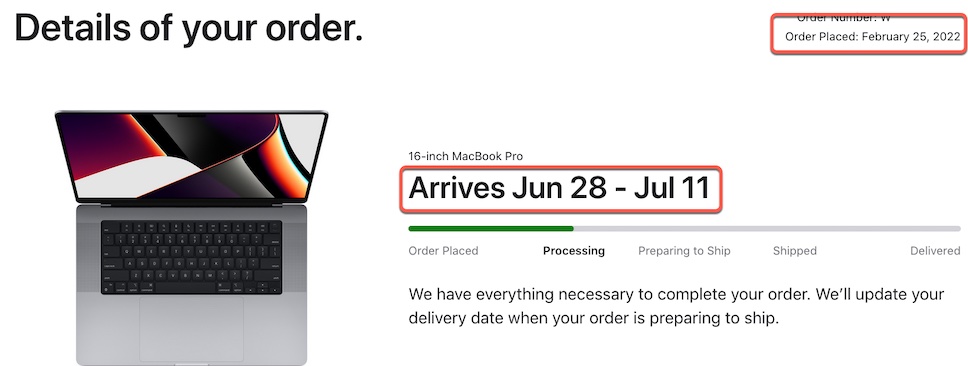 ผู้ที่ทำรายการสั่งซื้อ MacBook Pro รุ่น 16 นิ้ว รายหนึ่ง ซึ่งมีการปรับแต่งฮาร์ดแวร์เพิ่มเติม อ้างว่าได้ทำรายการสั่งซื้อไปตั้งแต่เดือนกุมภาพันธ์ที่ผ่านมา แต่ยังไม่ได้รับการจัดส่ง ซึ่งล่าสุด Apple ได้ส่งอีเมลมายืนยันว่า การจัดส่งถูกเลื่อนออกไปอยู่ในช่วงปลายเดือนมิถุนายนหรือต้นเดือนกรกฎาคมนี้