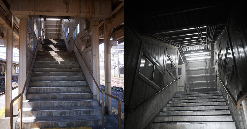 ความจริงแล้วบรรยากาศของสถานีรถไฟ Etchū-Daimon ที่ subjectn นำมาให้ชม ไม่ใช่สถานที่ในโลกจริง แต่เป็นโลกเสมือนจริงที่ถูกสร้างขึ้นโดย Unreal Engine 5 ซึ่งเป็นเอนจิ้นที่ผู้พัฒนาเกมหลายค่ายต่างก็นำไปใช้สร้างเกมยอดนิยม