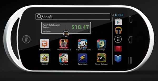 โดยเกมคอนโซลดังกล่าวมีชื่อว่า MG มันมาพร้อมกับซีพียูซิงเกิ้ล คอร์ระดับ 1GHz Cortex A5, แรม 1 GB หน้าจอทัชสกรีน 4 นิ้วแบบ Gorilla Glass พร้อมกล้องหน้าขนาด 1.3 ล้านพิกเซล ที่ใช้สำหรับฟังก์ชั่นจดจำใบหน้า มีหน่วยความจำภายในตัว 4 GB และมี microSD เพิ่มมาให้อีก 8 GB รวมเป็น 12 GB ส่วนระบบปฏิบัติการแน่นอนว่าขับเคลื่อนด้วย Android 4.0 ขณะที่แบตเตอรี่มีขนาด 1,880 mAh ซึ่งสามารถเล่นเกมต่อเนื่องได้ราว 3.75 ชั่วโมง และสแตนด์บายด์ได้มากกว่า 5 วัน