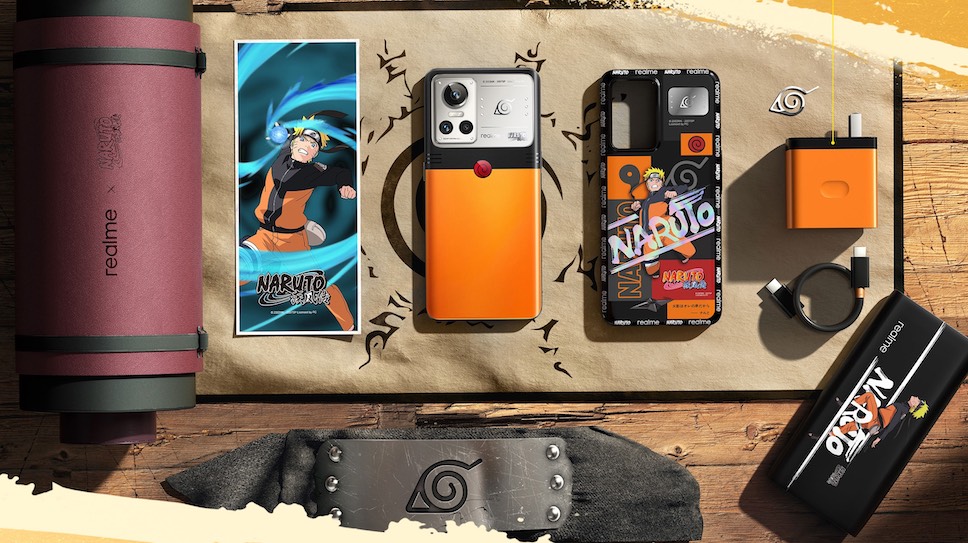 realme เปิดตัวสมาร์ทโฟนรุ่นพิเศษเอาใจสาวก Naruto อนิเมะยอดนิยมจากประเทศญี่ปุ่น realme GT Neo3 Naruto Limited Edition โดยเป็นการนำ realme GT Neo3 มาปรับโฉมใหม่ให้เข้ากับธีมของ Naruto ทำให้มีตัวเครื่องสีส้มตัดกับสีดำ และมีสัญลักษณ์ที่พบในแถบคาดศีรษะของ Naruto ทำจากโลหะติดตั้งไว้ที่ด้านหลัง
