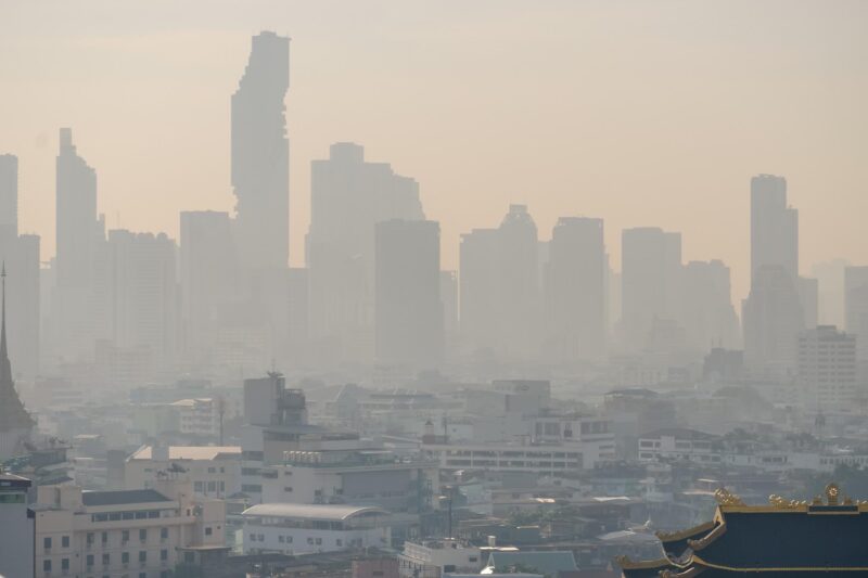 Problem air pollution at hazardous levels with PM 2.5 dust, smog or haze, low visibility in Bangkok city ,Thailand