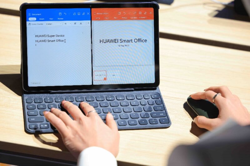 เคล็ดลับการทำพรีเซนเทชันด้วยแท็บเล็ตอย่างสะดวกที่สุดคือใช้พื้นที่หน้าจอทั้งหมดเปิดชิ้นงานแล้วใช้อุปกรณ์เสริมเป็นตัวช่วย เช่น ใช้คีย์บอร์ดพกพาในการพิมพ์เนื้อหา ใช้เมาส์บลูทูธในการคลิกแทนการใช้นิ้วสัมผัสหน้าจอ และใช้ปากกาอัจฉริยะในการวาด เขียน จดบันทึก ไฮไลท์ส่วนที่อยากเน้น รวมไปถึงลากไอเท็มต่างๆ ไปยังบริเวณที่ต้องการ ยิ่งถ้าแท็บเล็ตและอุปกรณ์เสริมทั้งหมดเป็นแบรนด์เดียวกันก็ยิ่งเชื่อมต่อกันง่ายและใช้งานได้รวดเร็วทันใจ อย่าง HUAWEI MatePad 10.4-inch 2022 ซึ่งสามารถใช้งานคู่กับ HUAWEI Smart Keyboard ได้ทันที โดยแผงปุ่มกดขนาด Full size พร้อมเพิ่มปุ่มคียลัดต่าง ๆ และระยะทางคีย์ขนาด 1.3 มม. นี่เองทำให้ผู้ใช้ได้ฟีลเหมือนกำลังใช้งานบนแล็ปท็อปขนาดจิ๋ว ขณะที่ HUAWEI M-Pencil Package 2nd generation ก็จับคู่ใช้งานได้เลย ส่วนเมาส์บลูทูธจากหัวเว่ย เมื่อเปิดใช้งานก็จะมีหน้าต่างปรากฏขึ้นมาบนจอแท็บเล็ตให้กดยืนยันการเชื่อมต่อ นอกจากนั้นยังสามารถดู Preview หรือหน้าต่างที่เปิดค้างไว้บริเวณด้านขวาล่างของหน้าจอ เช่น หากเราเปิดแอปฯ WPS ค้างไว้ก็สามารถกด Template ไปยังหน้าหลักที่ต้องการได้เลย เพียงเท่านี้ชีวิตก็ง่ายขึ้นอีกหลายระดับเสมือนมีแล็ปท็อปขนาดย่อมที่มีน้ำหนักเบาติดตัวแต่ใช้งานได้ครบเครื่อง