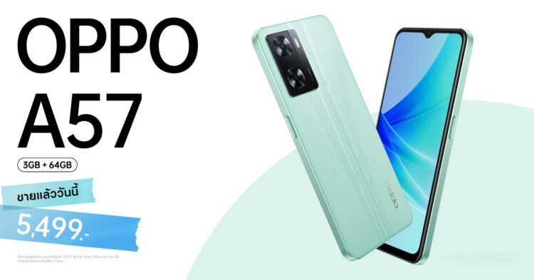 ออปโป้ ไทยแลนด์ วางจำหน่าย “OPPO A57 รุ่น RAM 3GB + ROM 64GB ” อย่างเป็นทางการในประเทศไทย สมาร์ตโฟนรุ่นล่าสุดจาก OPPO A Series ที่ตอบโจทย์ประสิทธิภาพการใช้งานได้ไหลลื่นไม่มีสะดุด ด้วยการเพิ่มหน่วยความจำ RAM 3GB และ ROM 64GB พร้อม RAM Expansion ที่ให้เพิ่มความจุได้มากขึ้นถึง 4GB และ พื้นที่จัดเก็บเพิ่มเติมถึง 1TB เก็บข้อมูลได้แบบจุใจ เสริมด้วยเทคโนโลยีชาร์จไว 33W SUPERVOOCTM และแบตเตอรี่ขนาดใหญ่ 5,000mAh ใช้งานได้ยาวนานตลอดวัน และถ่ายรูปสวยไปอีกขั้นด้วยฟีเจอร์ Portrait Bokeh มอบภาพถ่ายที่สมบูรณ์แบบของการโฟกัสและการเบลอ พร้อมมอบความสวยงามอย่างเป็นธรรมชาติด้วยฟีเจอร์ AI Portrait Retouching และถ่ายเซลฟี่ได้สว่างคมชัดแม้อยู้ในเวลากลางคืนด้วยฟีเจอร์ 360°Fill Light เป็นมือโปรด้านการถ่ายภาพได้ง่ายๆ ด้วยคลิกเดียว สวยโดดเด่นด้วยตัวเครื่องบางเบามาพร้อมดีไซน์ OPPO Glow Design ที่ช่วยให้ทนต่อรอยนิ้วมือ รอยขีดข่วน มอบความสวยสะดุดตา น่าสัมผัส