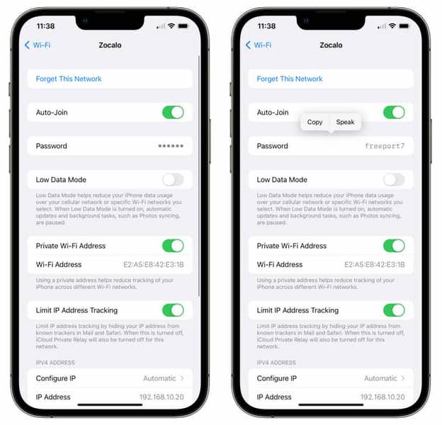 iOS 16 อนุญาตให้เจ้าของ iPhone มองเห็นรหัสผ่านเครือข่าย WiFi ที่เคยเชื่อมต่อได้แล้ว โดยเข้าไปในส่วนของ WiFi ที่แอป Settings แล้วแตะเครือข่ายที่เคยเชื่อมต่อ จะมีตัวเลือก Password เมื่อแตะจะแสดงรหัสผ่านของเครือข่าย WiFi นั้นพร้อมตัวเลือกในการคัดลอกไปยังคลิปบอร์ด แต่ผู้ใช้งานจะต้องยืนยันตัวตนด้วย Face ID, Touch ID หรือ รหัสผ่าน
