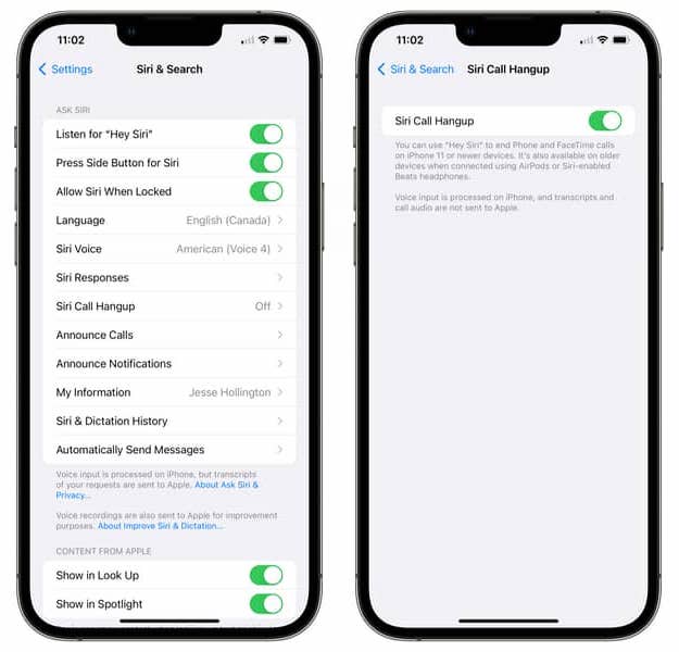 iPhone 11 และรุ่นใหม่กว่า สามารถขอให้ Siri ช่วยวางสายได้ ทั้งในการโทรปกติ หรือ โทรผ่าน FaceTime เพียงพูดว่า “Hey Siri, Hangup” แต่จะทำได้หลังจากอัปเดท iPhone เป็น iOS 16 และเข้าไปเปิดการทำงานที่ Siri & Search ในแอป Settings จากนั้นมองหาตัวเลือก Siri Call Hangup
