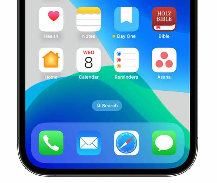 Home Screen ใน iOS 16 มีการเพิ่ม Spotlight หรือ ปุ่มค้นหาไว้เหนือ Dock ช่วยให้ผู้ใช้งานค้นหาข้อมูลได้เร็วยิ่งขึ้น และเมื่อมีการใช้งาน Spotlight จะถูกขยายให้ใหญ่ขึ้น เพื่อให้คำแนะนำอัจฉริยะและผลลัพธ์ รวมถึงข้อความในรูปภาพ จากแอป Messages, Notes, Files นอกจากนี้ ยังสามารถเรียกใช้คำสั่งลัดจาก Spotlight ได้โดยตรงอีกด้วย