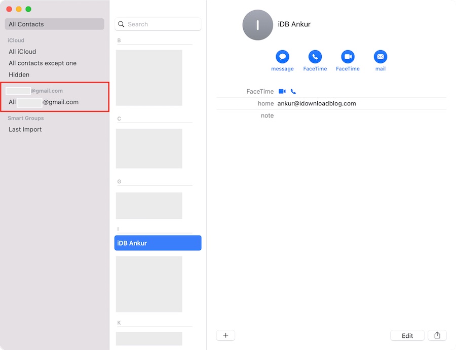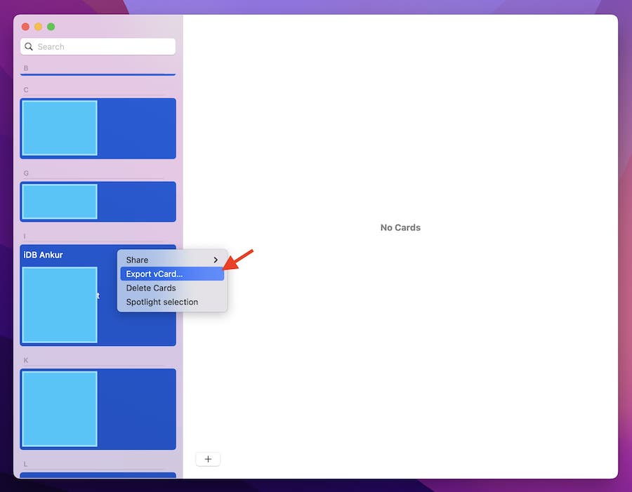 - เปิดแอป Contacts บน Mac จากนั้นกดปุ่ม Command + A เพื่อรายชื่อใน iCloud ทั้งหมด