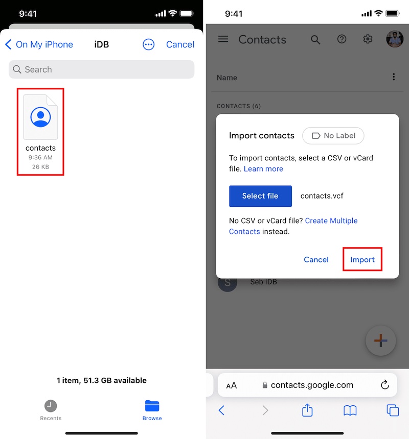 หลังจาก Export vCard เรียบร้อย ผู้ใช้งานจะได้รายชื่อ iCloud มาจัดเก็บไว้ใน Windows PC ด้วยรูปแบบไฟล์ VCF จากนั้น จะสามารถ Import เพื่อนำเข้าไฟล์ VCF ไปยังบัญชี Google ผ่านเว็บไซต์ contacts.google.com