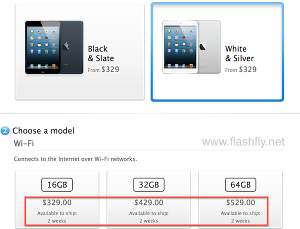 วันนี้เป็นวันแรกที่ Apple เปิดให้สั่งจอง iPad mini ซึ่งรุ่น wifi จะสามารถรับสินค้าได้ในวันที่ 2 พฤศจิกายนที่จะถึงนี้ ล่าสุดที่หน้าเว็บ Apple Online Store ได้มีการปรับเปลี่ยนวันลาส่งเครื่องล๊อตแรกแล้วซึ่งเป็นเฉพาะสีขาวเท่านั้น จากเดิมที่ระบุว่าส่งสินค้าวันที่ 2 พฤศจิกายน เป็นพร้อมจัดส่งภายใน 2 สัปดาห์แทนแล้ว ขณะที่สีดำยังคงจัดส่งตามปกติ ซึ่งกระแสของ iPad mini เรียกได้ว่ามาแรง อย่างในประเทศฮ่องกงมียอดจองเต็มในเวลา 2 นาทีที่เปิดจองเท่านั้น