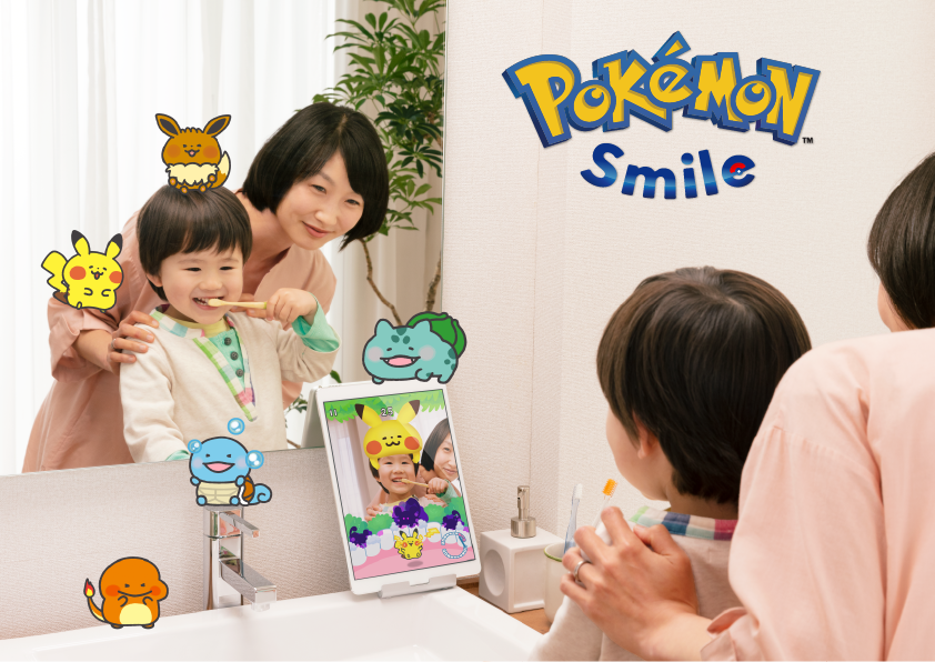 “Pokémon Smile” เป็นแอปพลิเคชันเกมฟรีสำหรับสมาร์ทโฟนที่ทำให้การแปรงฟันกับโปเกมอนเป็นเรื่องสนุก หากคุณแปรงฟันอย่างถูกวิธี คุณจะสามารถเอาชนะแมงกินฟัน (แบคทีเรีย) ในเกมและจับโปเกมอนได้ นอกจากนี้ เนื่องจากเป็นการส่งเสริมการแปรงฟัน เมื่อเกมจบลง คุณจะมีชุดแปรงฟันครบชุด สามารถสะสมโปเกมอนมากกว่า 100 ตัว เพื่อทำ “สมุดสะสมโปเกมอน” ให้ครบ นอกจากนี้สามารถสะสมหมวกโปเกมอนเพื่อความสนุกสนานระหว่างแปรงฟัน และสะสม “เหรียญรางวัลยาสีฟัน” เพื่อมุ่งสู่การเป็น “มาสเตอร์แห่งการแปรงฟัน” เต็มไปด้วยลูกเล่นต่างๆ ที่ทำให้คุณเพลิดเพลิน ดังนั้นการเล่นวันละเล็กวันละน้อยจะช่วยให้คุณค่อยๆ ชินกับการแปรงฟันจนเป็นกิจวัตร