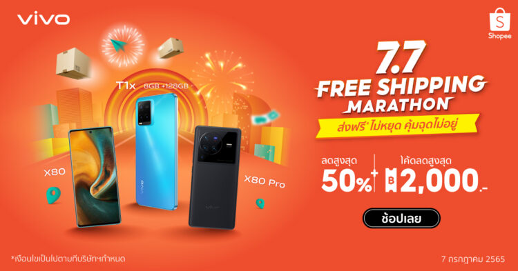 vivo แบรนด์สมาร์ตโฟนชั้นนำระดับโลกร่วมมือกับ Shopee ผู้นำแพลตฟอร์มอีคอมเมิร์ซในภูมิภาคเอเชียตะวันออกเฉียงใต้และไต้หวัน พร้อมส่วนลดสูงสุดแห่งเดือน 50% ละโค้ดส่วนลด 2 ต่อ ลด 977 บาท พร้อมโค้ดส่วนลด 1,500 บาทจาก Shopee โปรโมชั่นคุ้มมากพลาดไม่ได้แล้ว
