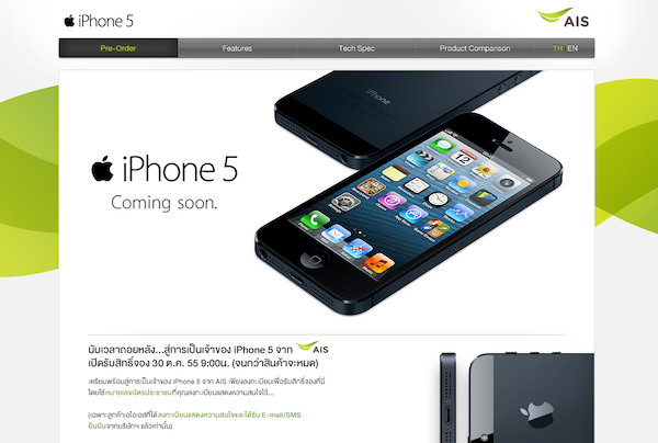 เตรียมลงทะเบียนรับสิทธิ์จองได้ที่ http://iphone5.ais.co.th/th/