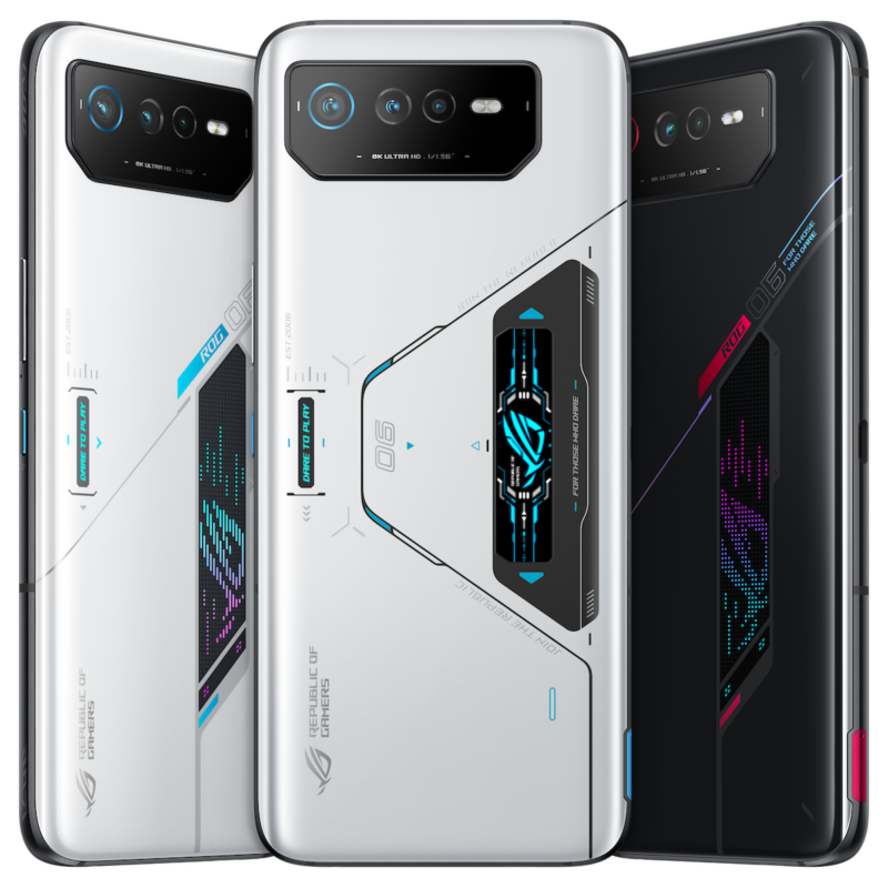 ROG Phone 6 มีให้เลือกในสี Phantom Black และ Storm White และยังมีการติดตั้งแสงไฟ Aura RGB ที่ด้านหลัง มีแรมแบบ LPDDR5 สูงสุด 16 GB และสตอเรจความจุสูงสุด 512 GB ขณะที่ ROG Phone 6 Pro นั้นมีเฉพาะในสี Storm White และมีฟีเจอร์หน้าจอสีขนาดเล็ก ROG Vision ที่ด้านหลัง แรม LPDDR5 ขนาด 18 GB และสตอเรจความจุ 512 GB