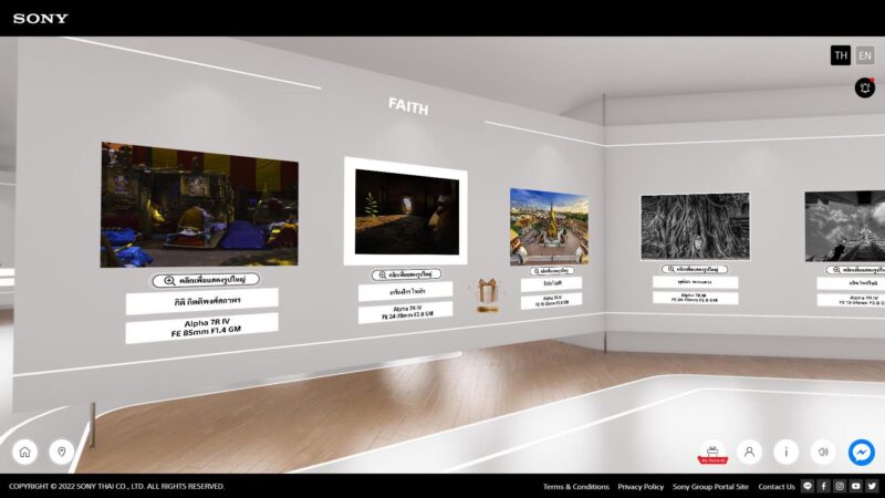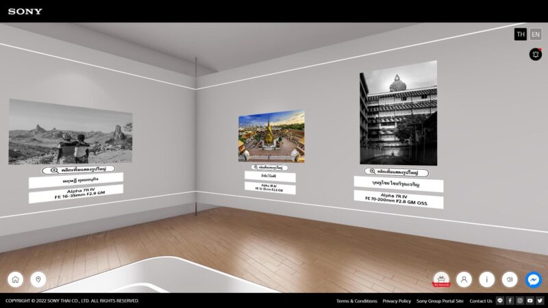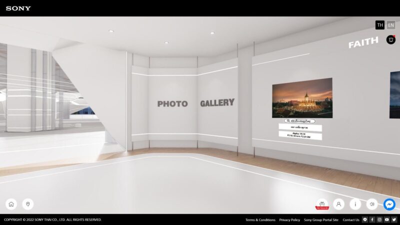 • โซนที่ 3: Gallery – ห้องจัดแสดงผลงานภาพถ่ายของช่างภาพมืออาชีพ และผู้ที่ชื่นชอบการถ่ายภาพที่โซนี่ได้รวบรวม และคัดสรรมาจัดแสดงในนิทรรศการภาพถ่ายบนโลกเสมือนจริง โดยในโอกาสนี้ โซนี่ไทยได้จับมือกับเพจ Sony Alpha Club Thailand และศูนย์อบรมถ่ายภาพสามกรุง ในการนำเสนอภาพถ่ายของช่างภาพชื่อดังกว่า 25 ท่าน อาทิ เกรียงไกร ไวยกิจ, รชฎ วิสราญกุล, บุณฐไชย ไชยวิรุณเจริญ, วศินบุรี สุพานิชวรภาชน์, พุฒิธร พรหมดวง, สมศักดิ์ พัฒนพิฑูรย์ เป็นต้น เพื่อเป็น แรงบันดาลใจให้แก่ชุมชน และผู้ที่รักการถ่ายภาพอีกด้วย