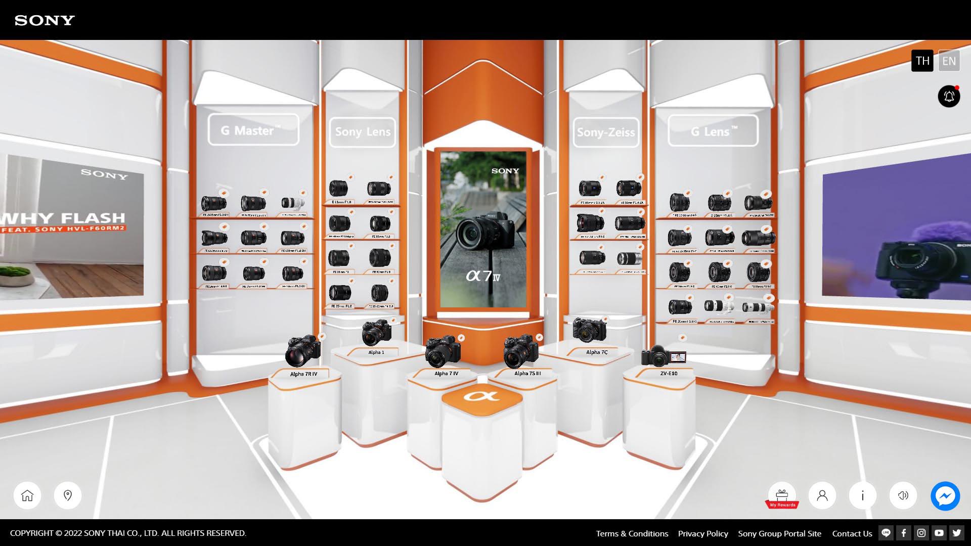• โซนที่ 4 : ห้องจัดแสดงสินค้า Digital Imaging – เป็นโซนจัดแสดงผลิตภัณฑ์กล้องของโซนี่รวบรวมกล้องทั้งรุ่นล่าสุด และรุ่นยอดนิยมมาไว้อย่างครบครัน ผู้เข้าเยี่ยมชมจะได้รับความสะดวกในการเลือกชมกล้องรุ่นต่าง ๆ เสมือนกับการได้ไปเลือกชมที่หน้าร้านค้า โดยผู้ใช้สามารถคลิกเลือกดูผลิตภัณฑ์ที่ชื่นชอบ จากนั้นระบบจะปรากฏข้อมูลของผลิตภัณฑ์ รวมถึงสามารถรับชมวิดีโอรีวิวผลิตภัณฑ์ พร้อมทั้งข้อมูลของร้าน Sony Store สาขาต่าง ๆ ที่มีผลิตภัณฑ์พร้อมให้ทดลองประสิทธิภาพที่หน้าร้าน และหากต้องการซื้อผลิตภัณฑ์ ก็ยังสามารถทำการสั่งซื้อได้ทันทีผ่านช่องทางออนไลน์ โดยจะเชื่อมต่อกับระบบการสั่งซื้อบนเว็บไซต์ Sony Store Online จึงนับเป็นการทำการตลาดแบบผสมผสานระหว่าง Online / Offline อีกช่องทางหนึ่งด้วย