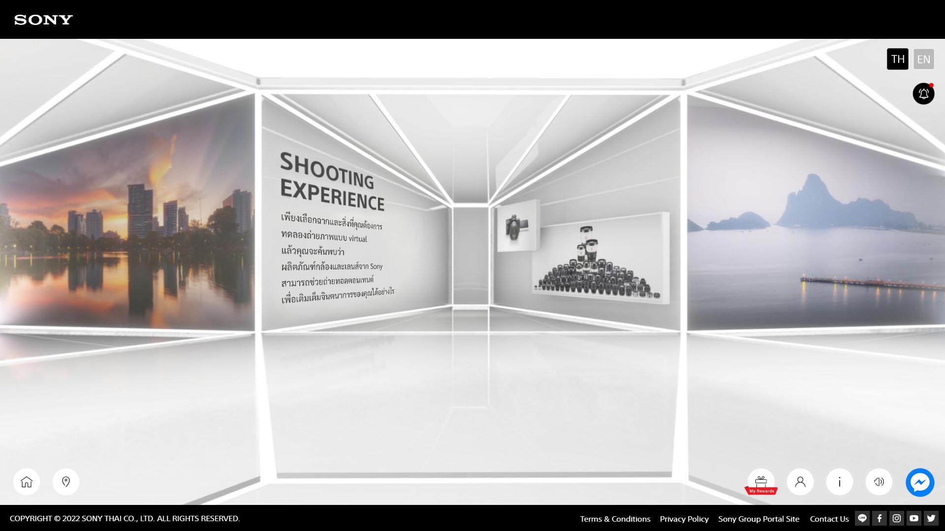 • โซนที่ 2: Shooting Experience – เป็นโซนที่ให้ผู้ใช้งานสามารถทดลองถ่ายภาพแบบ Hybridgraphy หรือการถ่ายภาพทั้งในโหมดภาพนิ่ง และวิดีโอ ผ่านห้องจำลองเพื่อการถ่ายภาพในแบบต่าง ๆ ได้แก่ ห้องถ่ายภาพบุคคล ห้องถ่ายภาพดาว ห้องถ่ายภาพสถานที่ท่องเที่ยว ห้องถ่ายภาพในเมือง ห้องถ่ายภาพนก เป็นต้น นอกจากนี้ผู้ใช้ยังสามารถเลือกฉากห้อง วัตถุ เลนส์ ที่ต้องการถ่ายภาพหรือถ่ายวิดีโอได้ จากนั้นระบบจะแสดงภาพตัวอย่าง พร้อมวิดีโอจำลองวิธีการตั้งค่า หรือวิดีโอตัวอย่างที่ถูกถ่ายจากสถานที่นั้น ๆ ด้วยอุปกรณ์กล้อง และเลนส์ช่วงต่าง ๆ ของโซนี่ได้เป็นอย่างดี