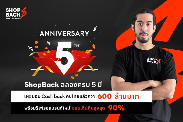 ShopBack เว็บไซต์และแอปพลิเคชั่นด้าน Cash back อันดับหนึ่งในเอเชียตะวันออกเฉียงใต้ เฉลิมฉลองครบรอบ 5 ปีในไทย เดินหน้าส่งมอบ Cash back คนไทยอย่างต่อเนื่อง หลังมอบไปแล้วกว่า 600 ล้านบาท ตลอด 5 ปีที่ผ่านมา รวมถึงได้รีเฟรชแบรนด์ใหม่เอาใจขาช้อป ปรับเปลี่ยนโลโก้ และวิชวลของแบรนด์ให้สะท้อนถึงวิสัยทัศน์ใหม่ของแบรนด์ที่ว่า Big things are powered by small wins หรือ ทุกความสำเร็จที่ยิ่งใหญ่ เริ่มจากชัยชนะเล็กๆ ยิ่งไปกว่านั้นเพื่อเป็นการตอบแทนคนไทยที่วางใจให้ ShopBack เป็นพาร์ทเนอร์เรื่องการ ช้อปปิ้งมามากกว่า 5 ปี ส่งมอบ Cash back สูงสุดถึง 90% จากการช้อปผ่านช้อปปิ้งแพลตฟอร์มชั้นนำมากมาย อาทิ Lazada, Central, Shopee, Agoda, booking.com, Line man ตั้งแต่วันนี้จนถึง 23 ก.ค. 2565 นี้เท่านั้น