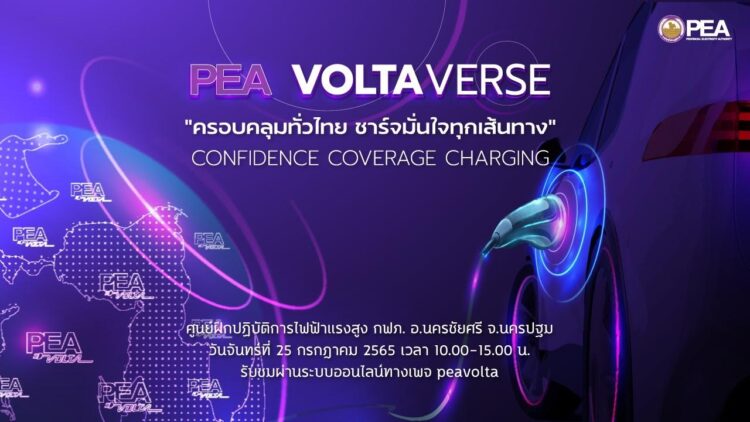 การไฟฟ้าส่วนภูมิภาค หรือ PEA โดย นายศุภชัย เอกอุ่น ผู้ว่าการการไฟฟ้าส่วนภูมิภาค เตรียมจัดงาน “PEA VOLTAVERSE: ครอบคลุมทั่วไทย ชาร์จมั่นใจทุกเส้นทาง” ในรูปแบบออนไลน์ โดยได้รับเกียรติจาก นายสุทธิพงษ์ จุลเจริญ ปลัดกระทรวงมหาดไทย เป็นประธาน ในวันจันทร์ที่ 25 กรกฏาคม 2565 เวลา 10.00 – 15.00 น. เพื่อมุ่งเน้นการปรับรูปแบบเข้าสู่ Landscape ใหม่ และพลิกองค์กรสู่การเป็น Digital Utility ที่ครอบคลุมการดำเนินงานทุกด้าน โดยประกาศความเป็นผู้นำธุรกิจให้บริการด้านยานยนต์ไฟฟ้าชั้นนำระดับประเทศ พร้อมเดินหน้าพัฒนาฟีเจอร์ใหม่ล่าสุด AUTOCHARGE เป็นรายแรกของเมืองไทย