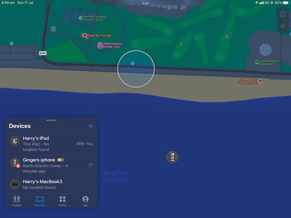 เจ้าของ iPhone เล่าว่า ขณะกำลังเล่น Paddleboard ได้เพียง 5 นาที iPhone ของเขาก็ตกลงจมสู่ก้นทะเล (แหล่งข่าวให้ข้อมูลเพิ่มเติมว่าเป็นมหาสมุทรแอตแลนติกเหนือ) แต่โชคดีที่สามารถติดตามจนเจอตำแหน่งผ่านแอป Find My และเก็บกู้ขึ้นมาได้ ซึ่งหลังจากผ่านไป 7 ชั่วโมง iPhone ของเขาก็สามารถเปิดเครื่องกลับมาทำงานได้อีกครั้ง (แหล่งข่าวคาดว่าเป็น iPhone X หรือรุ่นใหม่กว่า)