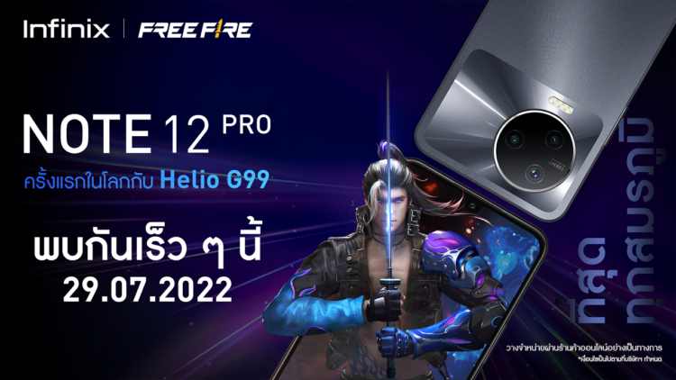 อินฟินิกซ์ (Infinix)เตรียมเปิดตัวสมาร์ตโฟนรุ่นใหม่ NOTE 12 PRO และ NOTE 12 PRO 5G กับสโลแกน ”Arena Grand Master – ที่สุด ทุกสมรภูมิ” เจาะตลาดมือถือสำหรับเล่นเกมในเรทราคาที่ดีที่สุด โดยเป็นอีกรุ่นใน NOTE 12 Series ที่ได้รับการพัฒนาต่อยอดจาก NOTE 12 ชูจุดเด่นด้วยซีพียูตัวใหม่ล่าสุด MediaTek Helio G99 พร้อมให้หน่วยพื้นที่ความจำตัวเครื่องสูงสุดถึง 256GB สามารถรองรับการใช้งานได้อย่างเต็มประสิทธิภาพ และยังมาพร้อมกับกล้องคุณภาพความละเอียด 108 ล้านพิกเซล ผสานกับหน้าจอ AMOLED ขนาด 6.7 นิ้ว FHD+ เพื่อมอบประสบการณ์การเล่นเกมและความบันเทิงในทุก รูปแบบอย่างเหนือระดับ พร้อมตอบโจทย์ความเป็น The Best budget Gaming Smart Phone Brand ได้อย่างแท้จริง