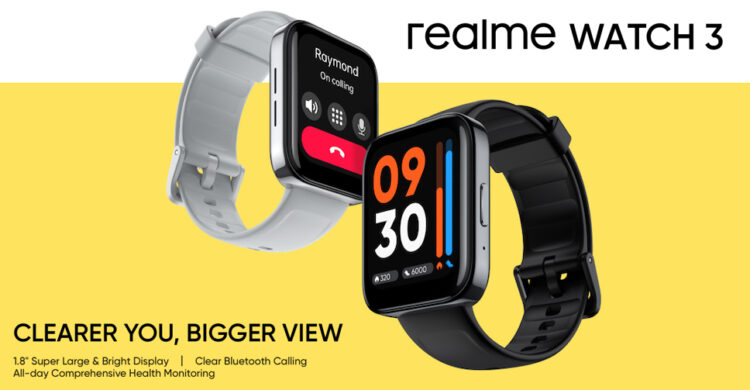 realme เปิดตัวสมาร์ทวอทช์รุ่นใหม่ realme Watch 3 อย่างทางการในอินเดีย โดยออกมาสานต่อ Watch 2 และ Watch 2 Pro ด้วยการปรับปรุงดีไซน์ให้มีขอบหน้าปัดบางลง และยังมีขนาดหน้าจอที่ใหญ่ขึ้นเป็น 1.8 นิ้ว (Watch 2 ขนาด 1.4 นิ้ว, Watch 2 Pro ขนาด 1.75 นิ้ว)