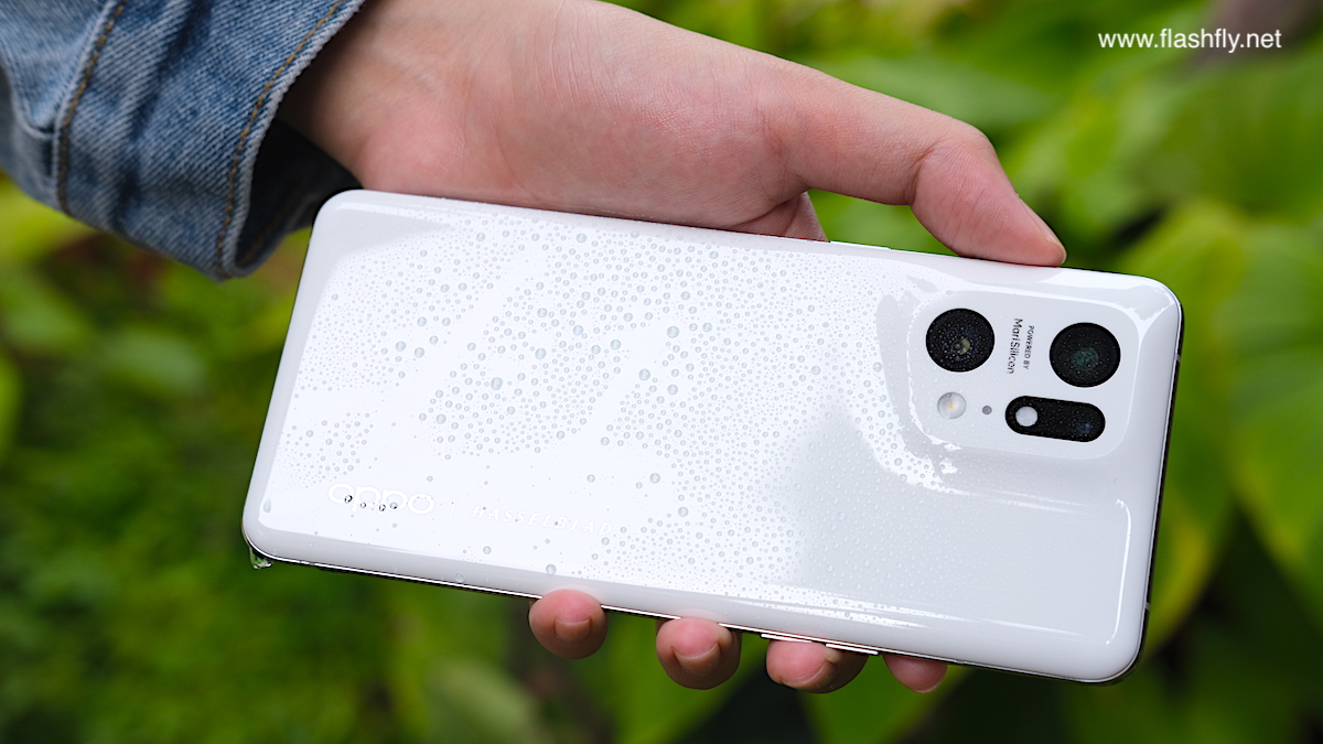 OPPO Find X5 Pro 5G พร้อมใช้งานได้ทุกสภาพอากาศแม้วันฝนตกหนักมาก ด้วยคุณสมบัติป้องกันน้าและฝุ่นในมาตรฐานระดับ IP68 ซึ่งหมายถึงอยู่รอดในน้ำที่ความลึกไม่เกิน 1.5 เมตร นานสูงสุด 30 นาที โดยมีให้เลือก 2 สี ได้แก่ Ceramic White และ Glaze Black