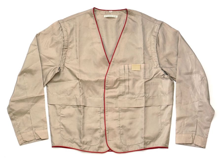 Issey Miyake เกิดที่ Hiroshima ในปี 1938 และได้มีโอกาสออกแบบแจ็คเก็ตให้กับ Sony ในปี 1981 เพื่อให้พนักงานสวมทับเครื่องแบบ โดยเป็นแจ็กเก็ตไนลอนสีน้ำตาลอมเทา โดดเด่นที่ส่วนแขนมาพร้อมซิปที่สามารถถอดออกเพื่อเปลี่ยนเป็นเสื้อกั๊กได้