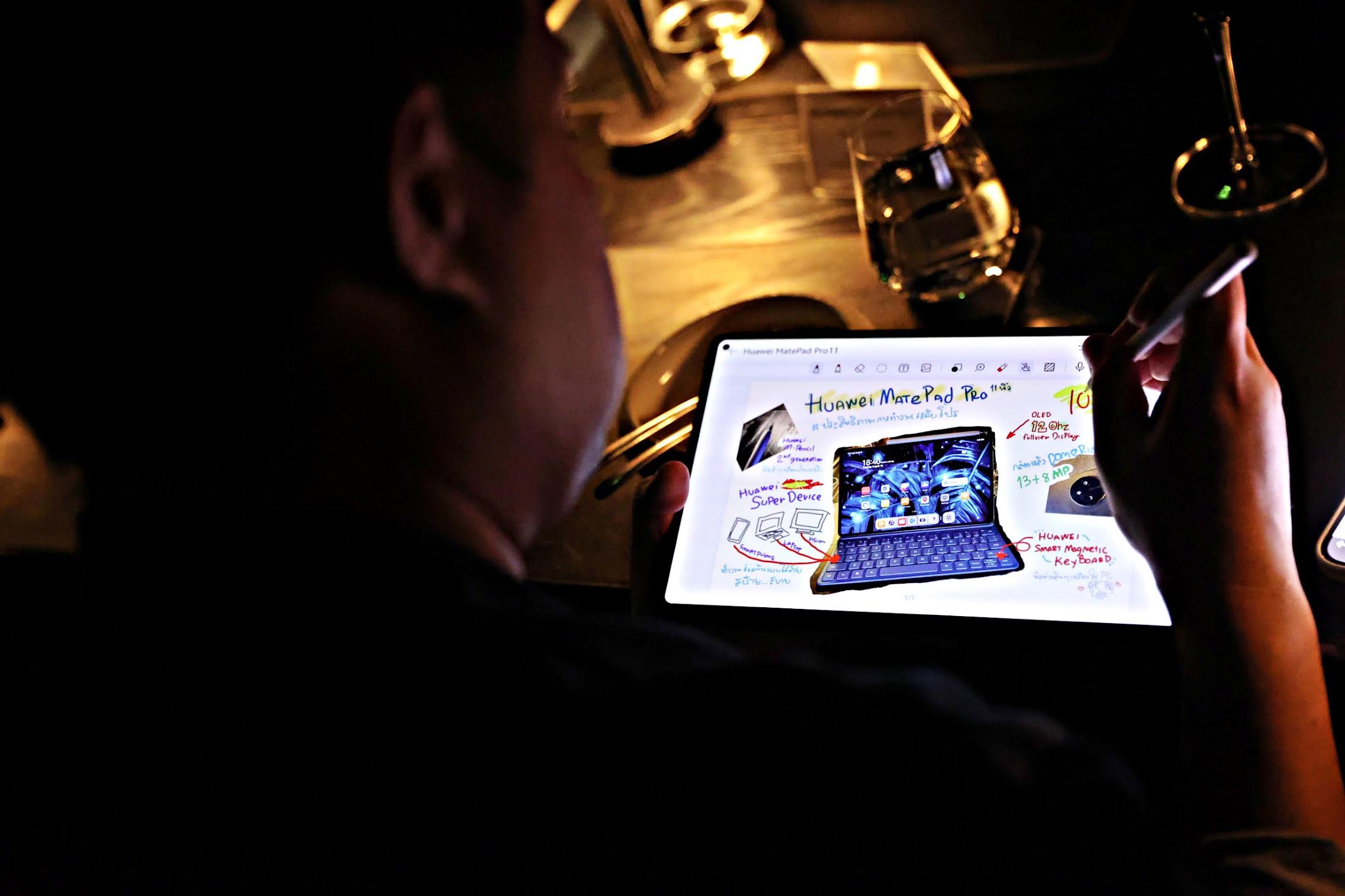 เมื่อได้ลิ้มรสอาหารอันน่าประทับใจจากฝีมือของเชฟนิค หัวเว่ยเปิดโอกาสให้สื่อได้ลองใช้ฟีเจอร์การสร้างสรรค์ของ HUAWEI MatePad Pro 11-inch ผ่านการรีวิวอาหาร โดยสื่อมวลชนจะได้มีโอกาสใช้ HUAWEI M-Pencil 2nd generation วาดภาพจานโปรดสุดประทับใจผ่านแอปพลิเคชัน Mojing Paint, IbisPaint X, MediBang Paint และ Sketches หรือจะเขียนบรรยายเรื่องราวความชอบกับมื้ออาหารในวันนี้กับแอปพลิเคชันจดโน้ตของหัวเว่ยอย่าง HUAWEI Notes ไปจนกระทั่งแอปฯ อื่นๆ ทั้ง Jnotes และ Touchnotes พร้อมใช้ภาพประกอบผ่านการถ่ายภาพด้วยกล้องหลังแบบ Dome Ring ความละเอียด 13 MP และยังได้มีโอกาสใช้ HUAWEI Smart Magnetic Keyboard อำนวยความสะดวกในพิมพ์ มอบประสบการณ์สร้างบันทึกมื้ออาหารสุดหรูได้อย่างโปรเสมือนใช้พีซี
