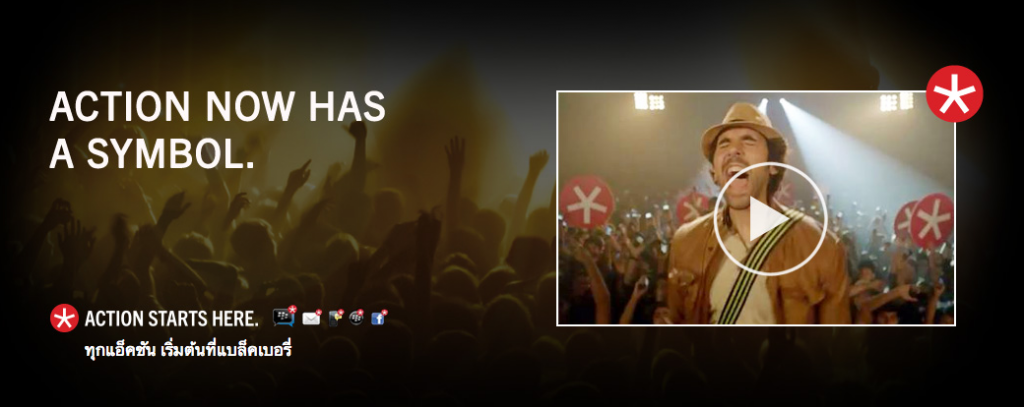 เมื่อเดือนสิงหาคม แบล็คเบอร์รีได้เปิดตัวแบรนด์แคมเปญ “Action Starts Here – ทุกแอ็คชั่น เริ่มต้นที่แบล็คเบอร์รี่” ซึ่งตลอดระยะเวลา 3 เดือนที่ผ่านมา แบล็คเบอร์รี่ได้เชิญชวนเหล่าแฟนๆ เข้าร่วมสนุกกับแคมเปญดิจิตอลสุดพิเศษ ด้วยการร่วมแสดงแอ็คชั่น ทำตามความฝัน และทำให้โลกใบนี้น่าอยู่ยิ่งขึ้น โดยผู้เข้าร่วมกิจกรรมจะต้องบอกความตั้งใจในสิ่งที่อยากทำ หลังจากนั้นจึงลงมือทำจริงให้สำเร็จ พร้อมกับส่งภาพถ่ายแอ็คชั่นที่ลงมือทำไปแล้ว ผ่านมาทางแอพพลิเคชั่น Action Starts Here บนหน้าแฟนเพจเฟซบุ๊ค แบล็คเบอร์รี่ ประเทศไทย โดยกิจกรรมดังกล่าวได้เกิดขึ้นระหว่างวันที่ 21 สิงหาคม – 15 ตุลาคม ที่ผ่านมา