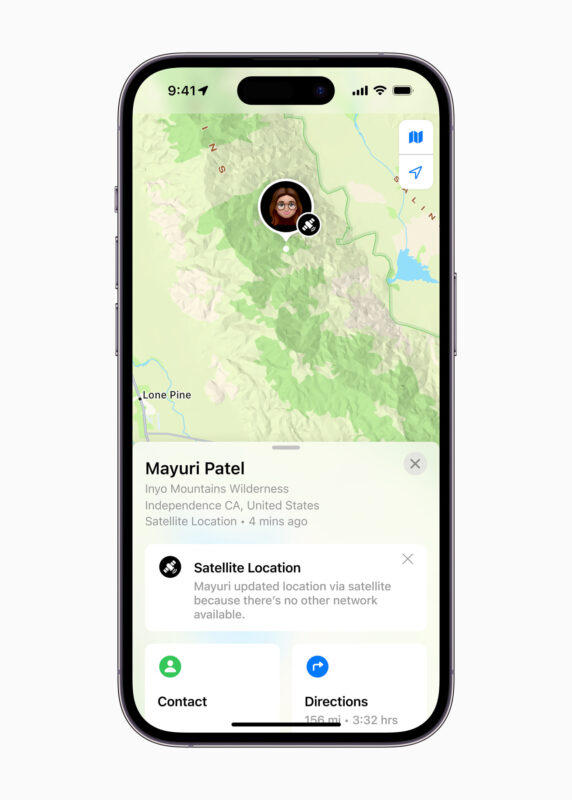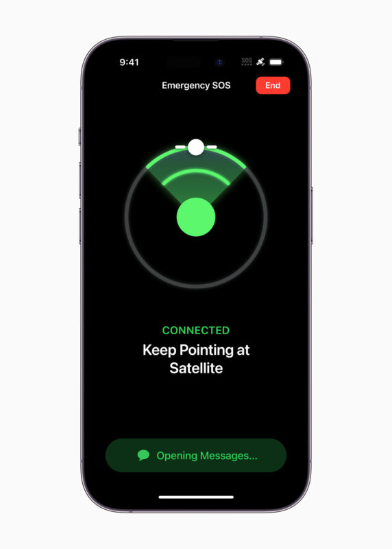 กลุ่มผลิตภัณฑ์ iPhone 14 ยังมาพร้อมคุณสมบัติ SOS ฉุกเฉินผ่านดาวเทียม ที่ผสานส่วนประกอบแบบเฉพาะเข้าเป็นหนึ่งเดียวกับซอฟต์แวร์ เพื่อให้สายอากาศสามารถเชื่อมต่อกับดาวเทียมได้โดยตรง และรองรับการรับส่งข้อความผ่านบริการฉุกเฉินเมื่ออยู่นอกพื้นที่ให้บริการเซลลูลาร์หรือ Wi-Fi ทั้งนี้ดาวเทียมเป็นอุปกรณ์ที่เคลื่อนไหวอยู่ตลอดเวลาและมีแบนด์วิดท์ต่ำ ดังนั้นจึงอาจใช้เวลาหลายนาทีในการส่งข้อความ แต่เนื่องจากทุกวินาทีมีความสำคัญ ดังนั้นคุณสมบัติ SOS ฉุกเฉินผ่านดาวเทียมจึงได้เตรียมคำถามสำคัญบางส่วนเอาไว้ใน iPhone ล่วงหน้าเพื่อประเมินสถานการณ์ของผู้ใช้ และแสดงวิธีหัน iPhone ไปในทิศทางที่สามารถเชื่อมต่อกับดาวเทียม จากนั้นก็จะส่งต่อแบบสอบถามเบื้องต้นและข้อความติดตามผลไปยังศูนย์บริการที่มีผู้เชี่ยวชาญซึ่งผ่านการฝึกอบรมจาก Apple ที่สามารถโทรติดต่อขอความช่วยเหลือแทนผู้ใช้ เทคโนโลยีอันสุดล้ำดังกล่าวยังอนุญาตให้ผู้ใช้แชร์ตำแหน่งที่ตั้งได้เองผ่านดาวเทียมด้วยแอปค้นหาของฉันเมื่อไม่สามารถเชื่อมต่อเซลลูลาร์หรือ Wi-Fi โดยมอบความอุ่นใจให้ในยามที่ออกเดินป่าหรือตั้งแคมป์ในพื้นที่อับสัญญาณ ทั้งนี้คุณสมบัติ SOS ฉุกเฉินผ่านดาวเทียมจะพร้อมให้บริการแก่ผู้ใช้ในสหรัฐอเมริกาและแคนาดาในเดือนพฤศจิกายน และให้บริการฟรีเป็นเวลา 2 ปี