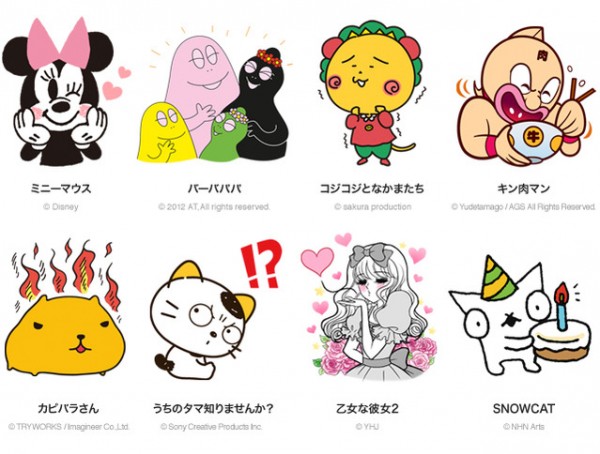 วันนี้ LINE แอพแชตยอดนิยมได้เปิดตัวและวางจำหน่ายสติ๊กเกอร์ใหม่อีก 8 แบบทั้งบน iPhone และ Android ซึ่งมีการ์ตูนยังอย่าง Minnie Mouse และ Babapapa รวมถึงการ์ตูนในดวงใจใครหลายคนอย่าง Kinnikuman ที่ชอบกินข้าวหน้าเนื้อเป็นชีวิตจิตใจ สำหรับ ID ประเทศไทยจะเห็นเพียง 5 แบบเท่านั้น จะไม่มี Kinnikuman,Kapibara-San และ Babapapa ให้จับจองต้องเป็น ID ประเทศญี่ปุ่นเท่านั้น มีดังนี้