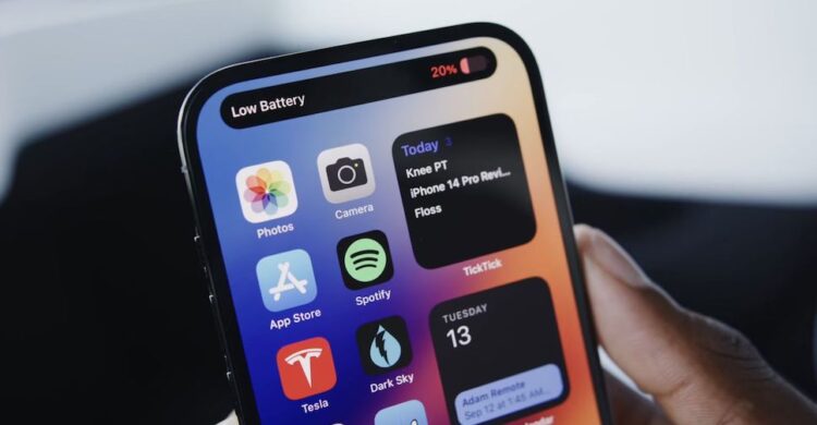 นอกจากความสามารถข้างต้น Dynamic Island ยังมีการแสดงแจ้งเตือนแบตเตอรี่ต่ำด้วย เมื่อพบว่าระดับแบตเตอรี่ลดลงมาเหลือ 20% ไม่ว่าจะเสียบสายชาร์จหรือไม่ก็ตาม ซึ่งแตกต่างจาก iPhone รุ่นอื่นๆ ที่จะแสดงการแจ้งเตือนตรงกลางหน้าจอ และสร้างความรำคาญให่กับผู้ใช้งาน