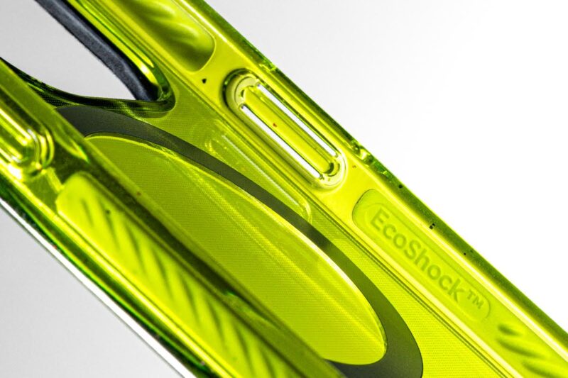 CASETiFY ได้สร้างสรรค์เทคโนโลยีสุดล้ำขึ้นมาด้วยวัสดุใหม่ที่มีกรรมสิทธิ์(อยู่ระหว่างการจดสิทธิบัตร) ภายใต้ชื่อ EcoShock™ (อีโค่ช็อก) ที่ทำมาจากพืช ซึ่งในระดับโมเลกุลของวัสดุใหม่นี้ สามารถเปลี่ยนพลังงานจลน์ของแรงกระแทกให้เป็นความร้อนได้ ส่งผลให้เกิดลวดลายบิดเกลียวกระจายไปทั่วพื้นผิวของเคส โดย CASETiFY ได้ใช้ EcoShock™ เสริมความแข็งแกร่งด้านในและด้านหลังของ Bounce Case เพื่อเพิ่มการป้องกันความเสียหายจากการตกหล่นมากขึ้น 20% เมื่อเทียบกับรุ่นที่ผ่านมา ทำให้กล้าพูดได้ว่า “นี่คือเคสมือถือที่ป้องกันได้ดีที่สุดแห่งยุค”