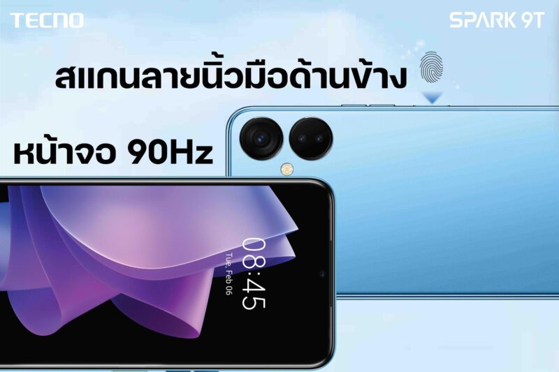 ติดตามข้อมูลเพิ่มเติมเกี่ยวกับ สมาร์ทโฟน TECNO SPARK 9T ใหม่ ได้ที่ https://www.tecno-mobile.com/th/phones/product-detail/product/spark-9t-11/ และทางเฟซบุ๊ก https://www.facebook.com/TECNOMobileThailand/
