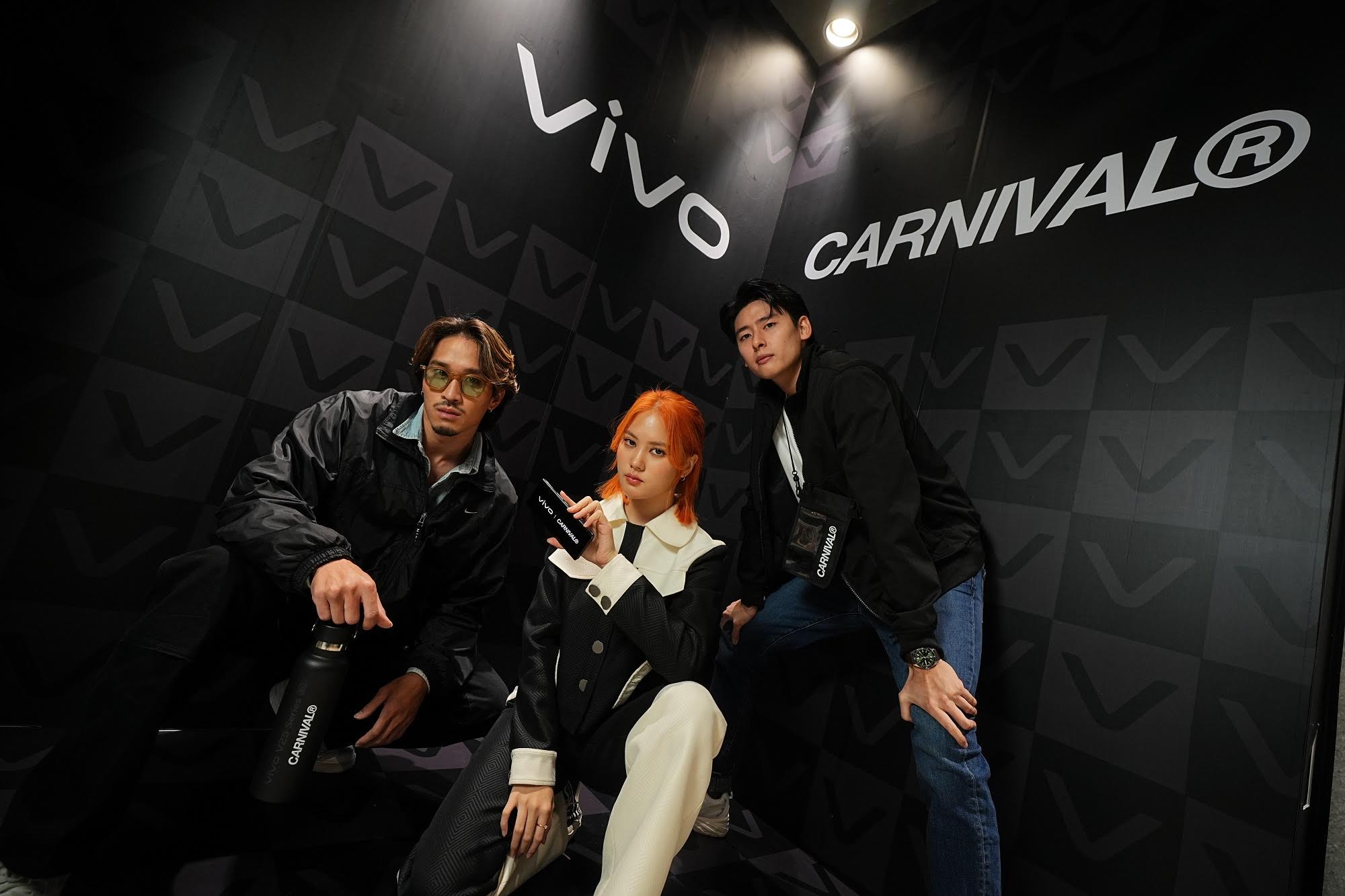นอกจากนี้ ภายในงานยังรวมเอาเหล่าอินฟลูเอนเซอร์ชื่อดังมาร่วมตอกย้ำความฮอตของไอเทมเด็ด vivo x CARNIVAL นำโดย เฟย-ภัทร เอกแสงกุล (ซ้ายสุด) นักแสดงหนุ่มมากความสามารถสุดเท่ที่ฝากฝีไม้ลายมือในซีรีส์มาแล้วหลายเรื่อง, ณ-ณภัทร วิกัยรุ่งโรจน์ (ขวาสุด) หนุ่มตี๋เจ้าของผลงานซีรีส์ดังมากมาย และ มินนี่-ภัณฑิรา พิพิธยากร (ตรงกลาง) นักแสดงสาวคลื่นลูกใหม่ที่กำลังมาแรงและน่าจับตามอง มาร่วมเป็นส่วนหนึ่งในคอลเล็กชันพิเศษครั้งนี้ ถ่ายทอดสไตล์ความเท่ที่ทั้งสองแบรนด์ร่วมกันรังสรรค์ออกมาได้อย่างลงตัว