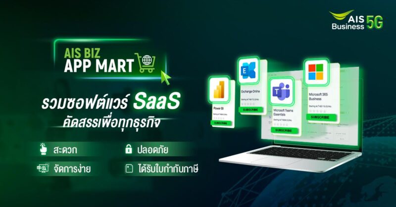 AIS Business ตอกย้ำความมุ่งมั่นในการสนับสนุนและเคียงข้างภาคธุรกิจไทยให้แข็งแกร่ง สร้างความได้เปรียบทางการแข่งขัน พร้อมทรานส์ฟอร์มองค์กรจากเครื่องมือดิจิทัล ล่าสุดเปิดตัว “AIS Biz App Mart สุดยอดมาร์เก็ตเพลสศูนย์รวมซอฟต์แวร์เพื่อธุรกิจ รายแรกในไทย” (Software as a service marketplace) ให้ภาคธุรกิจสามารถบริหารจัดการดิจิทัลโซลูชันและซอฟต์แวร์ได้ง่าย ครบ จบในที่เดียวด้วยตัวเองตลอด 24 ชั่วโมง โดยเปิดตัวด้วยการจับมือไมโครซอฟท์ นำเสนอบริการ Microsoft 365 Licenses แบบครบวงจร รวมไปถึงเครื่องมือเพื่อธุรกิจโดยเฉพาะ อาทิ Power BI เพื่อสร้างความสามารถด้านการนำข้อมูลมาใช้ในธุรกิจยุคใหม่ และ Exchange Online ระบบอีเมลที่ออกแบบมาเพื่อภาคธุรกิจ